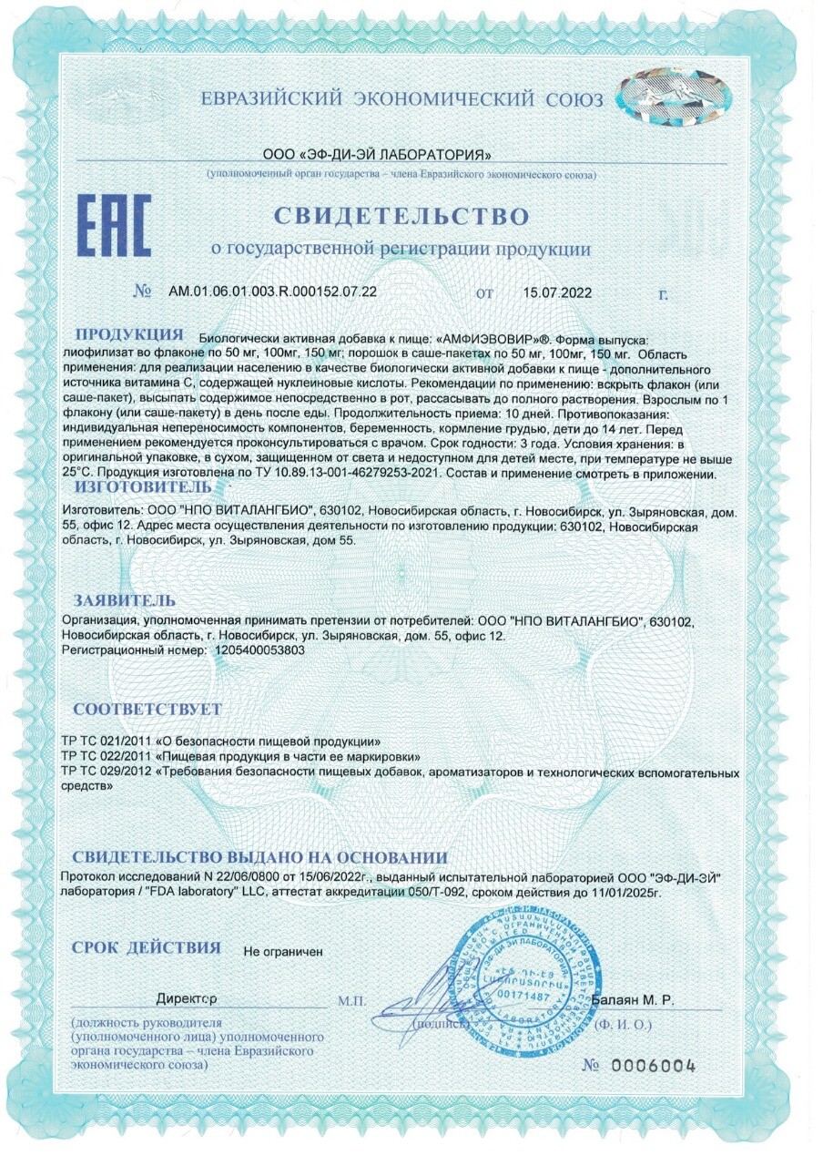 Только в Новосибирской области изучением свойств РНК с 70-х годов занимались целые институты и такие заслуженные люди в области науки, как С. Н. Загребельный, Р. И. Салганик, Ю. С. Аликин и многие другие. Сегодня исследования продолжаются и уже подтверждена безопасность и целесообразность использования препаратов с РНК и на основе РНК. По сути, БАД «Амфиэвовир» подставляет плечо нашему захромавшему иммунитету, после чего распадается на простейшие нуклеотиды и участвует в биохимических процессах жизнедеятельности. Многовековое использование человеком пекарских дрожжей, из которых получают нуклеотиды, лишний раз служит тому подтверждением.